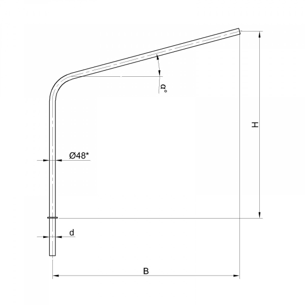Однорожковые кронштейны К2-1,0-1,0-1-1 предназначен для крепления светильника на трубчатой опоре освещения. Завод опор освещения «Альдекс» изготавливает однорожковые консольные кронштейны из стального проката. Собственное производство позволяет выполнять изделия надлежащего качества и в кратчайшие сроки. Конструкция однорожковых кронштейнов К2-1,0-1,0-1-1. Конструкция консольных однорожковых кронштейнов К2-1,0-1,0-1-1 представляет собой гнутую металлическую трубу заданных размеров.