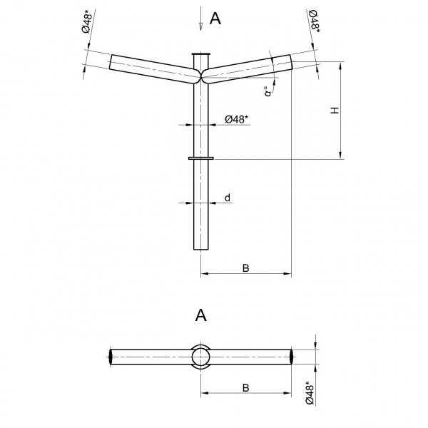 Двухрожковые кронштейны К21-0,2-0,5-1-1 предназначены для крепления светильника на трубчатой опоре освещения.